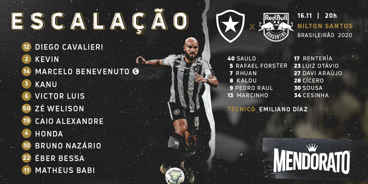 Com Éber Bessa entre os titulares, Botafogo está escalado para enfrentar o Bragantino - Super Rádio Tupi