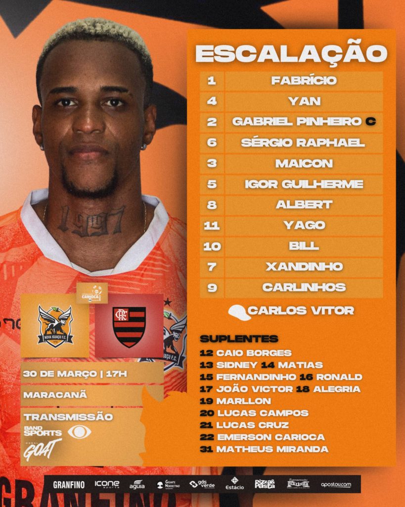 O Nova Iguaçu vem com Fabrício Santana; Yan Silva, Gabriel Pinheiro, Sérgio Raphael e Maicon Esquerdinha; Igor Fraga, Albert, Bill; Yago Ferreira, Xandinho, Carlinhos.
