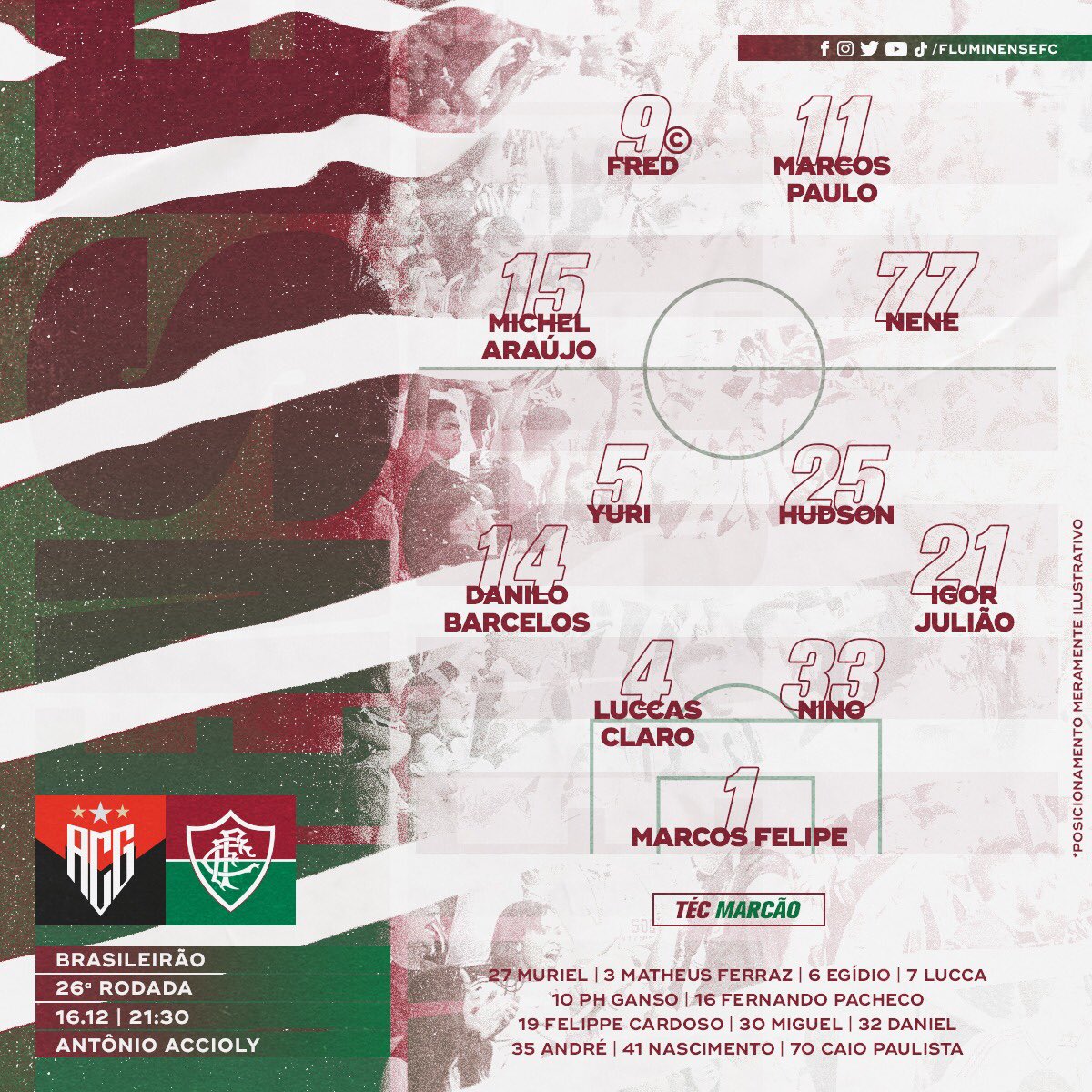 Com Fred no time titular, Fluminense está escalado para enfrentar o Atlético-GO