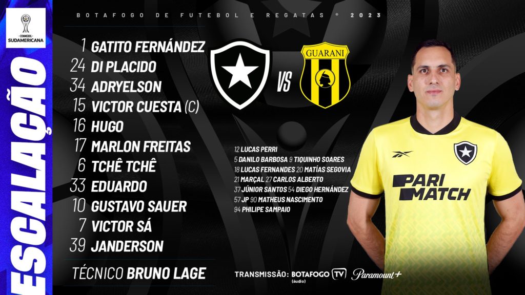 Com Gatito, Botafogo está escalado para pegar o Guaraní pelas oitavas da Copa Sul-Americana