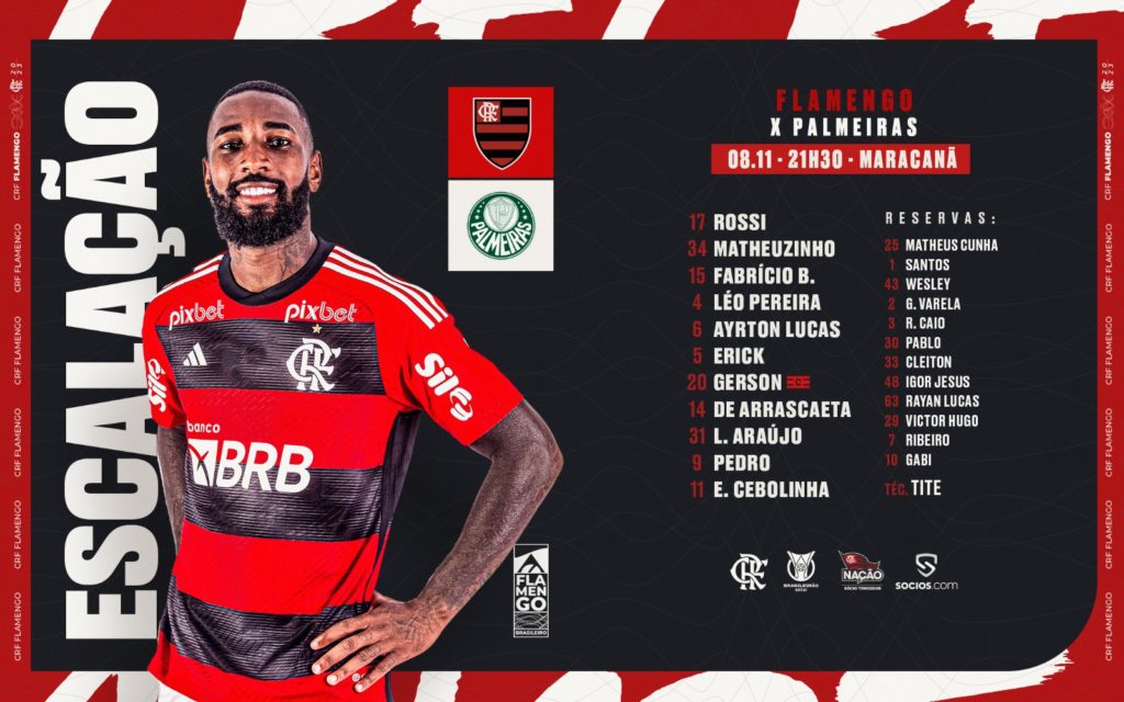 Com Gerson de volta, Flamengo está escalado para pegar o Palmeiras no Brasileiro