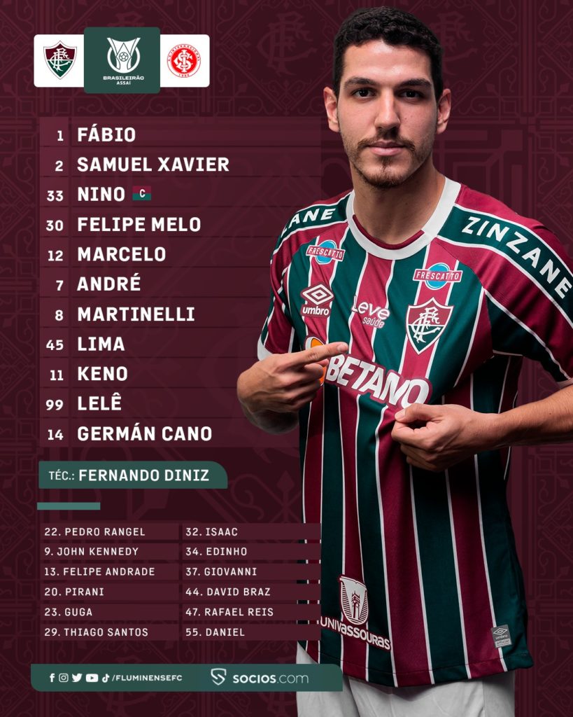 Com Lelê titular, o Fluminense está escalado para a partida contra o Internacional
