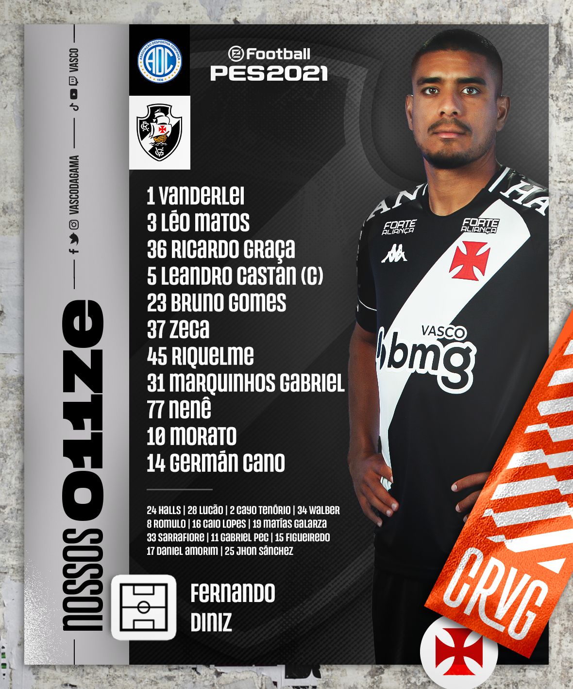 Com Léo Matos e Zeca no time, Vasco está escalado para pegar o Confiança pela Série B