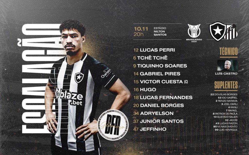 Com Lucas Fernandes, Botafogo está escalado para pegar o Santos pelo Brasileiro - Super Rádio Tupi
