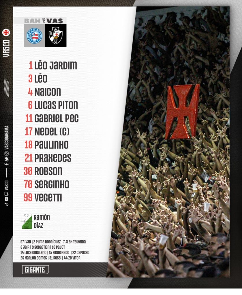 Com Maicon na vaga de Zé Gabriel, o Vasco está escalado contra o Bahia pelo Brasileiro