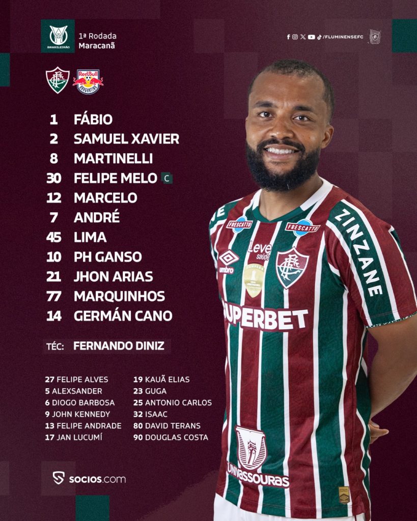 Fernando Diniz manteve a mesma escalação do Fluminense na partida pela Libertadores no meio de semana para a estreia no Campeonato Brasileiro neste sábado (13) no Maracanã, contra o Bragantino. O tricolor vai com força total em busca da primeira vitória para brigar pelo pentacampeonato do Brasileirão.