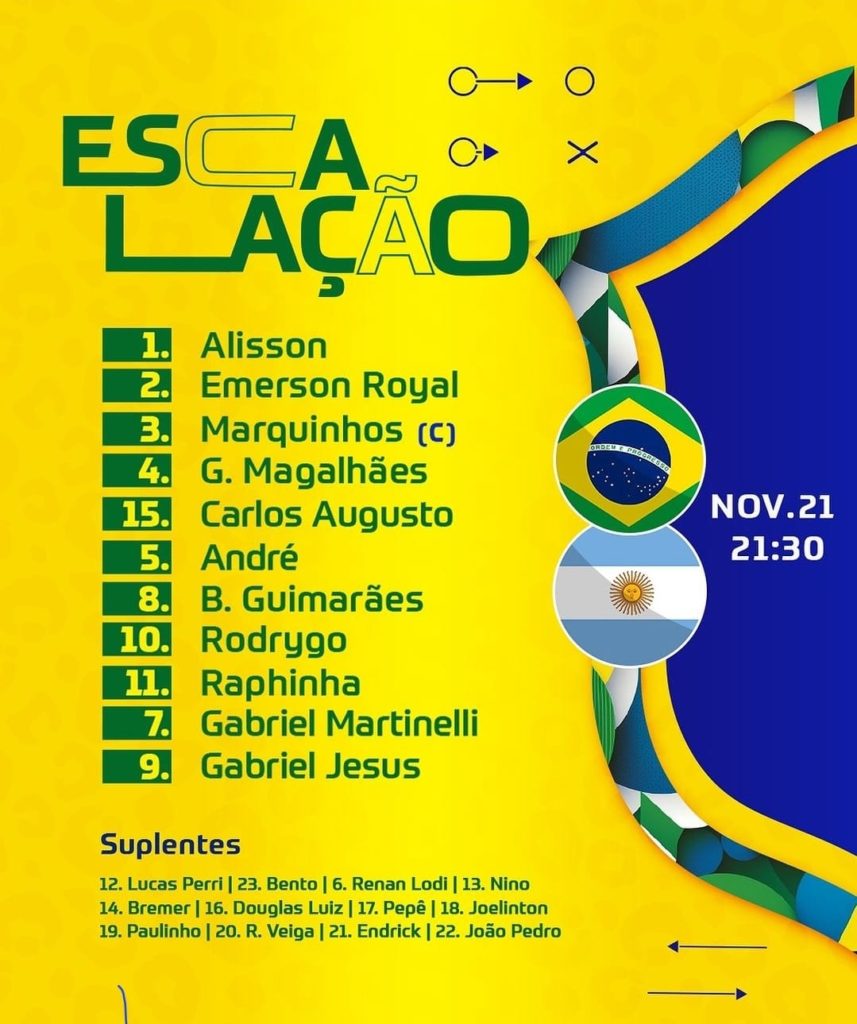 Com mudanças, Brasil está escalado para jogo contra a Argentina nas Eliminatórias