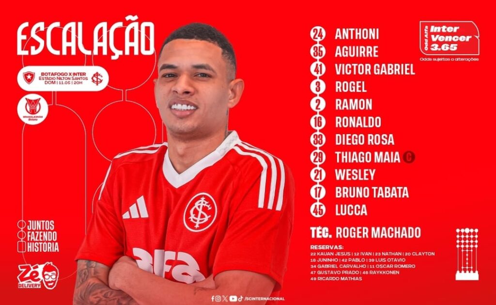 Já o Internacional, por outro lado, preservou quase todos os titulares para enfrentar o Botafogo, no Rio de Janeiro. Isso porque o Colorado tem o Nacional, do Uruguai, em Montevidéu, pela 5ª rodada da Libertadores, e está fora da zona de classificação de seu grupo no momento. Por isso, o treinador Roger Machado optou por poupar as principais peças. Somente Anthoni, Aguirre e Victor Gabriel, do esquema ideal, começarão o duelo.