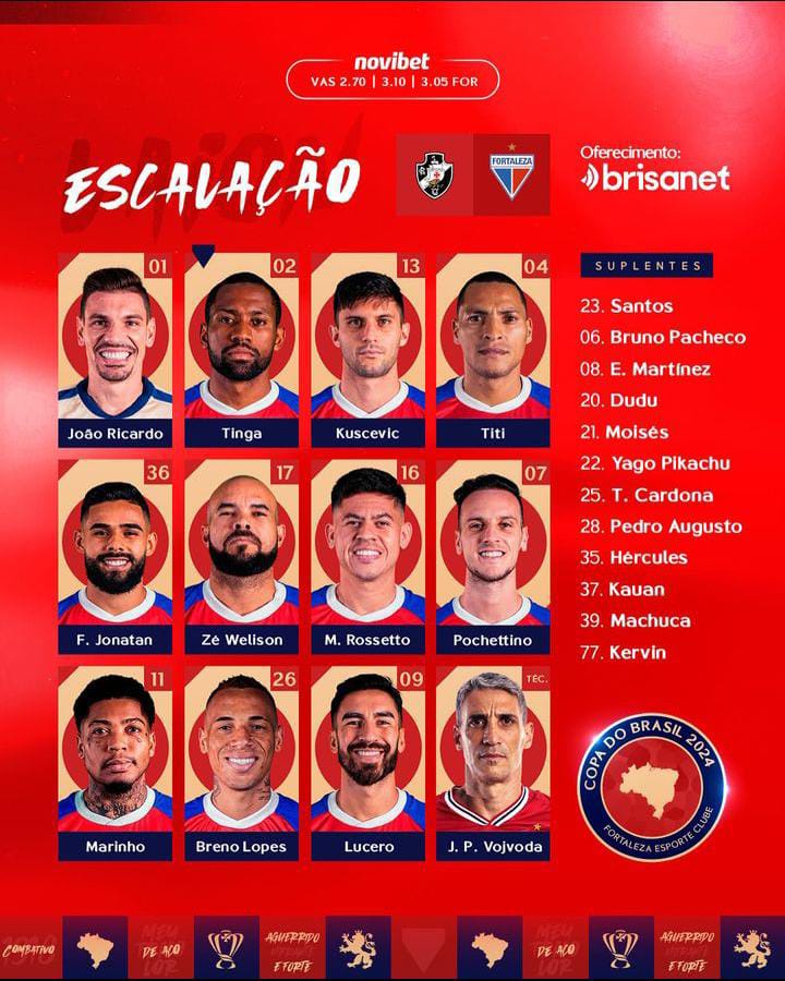 Com novidade no ataque, Vasco está definido contra o Fortaleza para confirmar classificação na Copa do Brasi