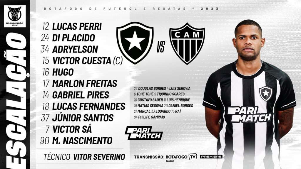 Com novidades, o Botafogo está escalado para a partida contra o Atlético-MG pelo Brasileirão