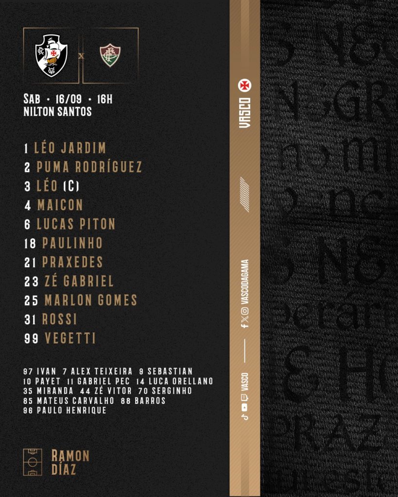 Com novidades, Vasco e Fluminense estão escalados para clássico pelo Brasileiro
