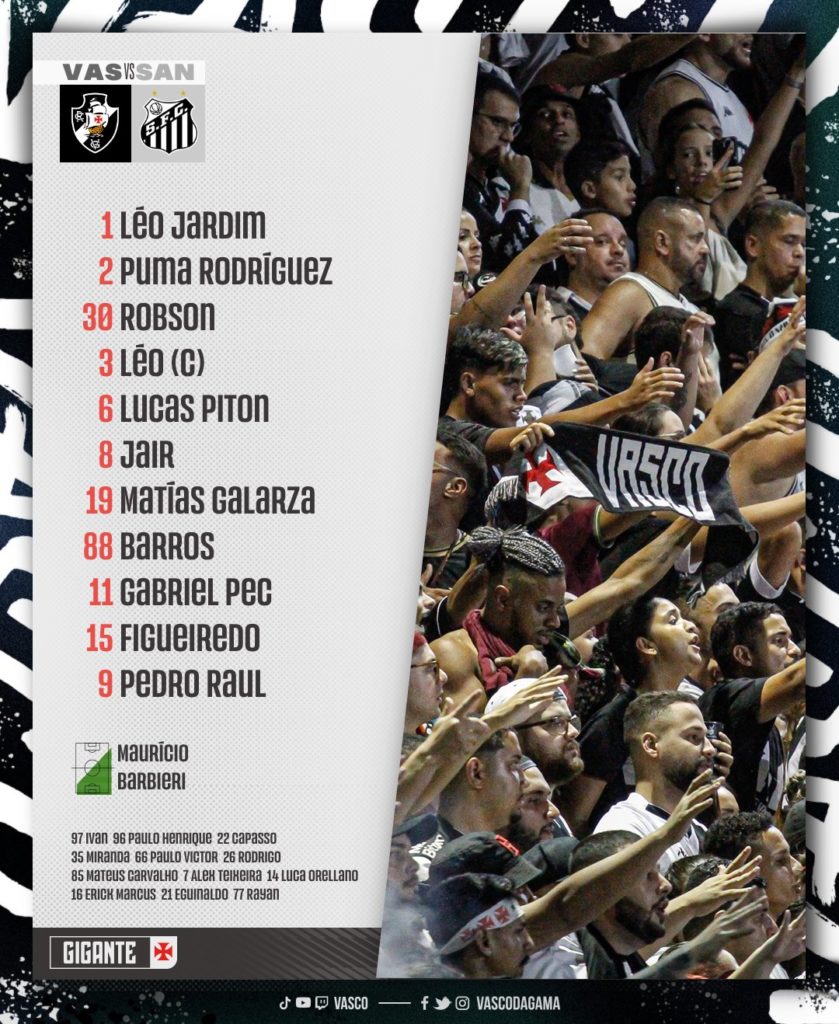 Com novidades, Vasco está escalado para encarar o Santos pelo Brasileirão; confira