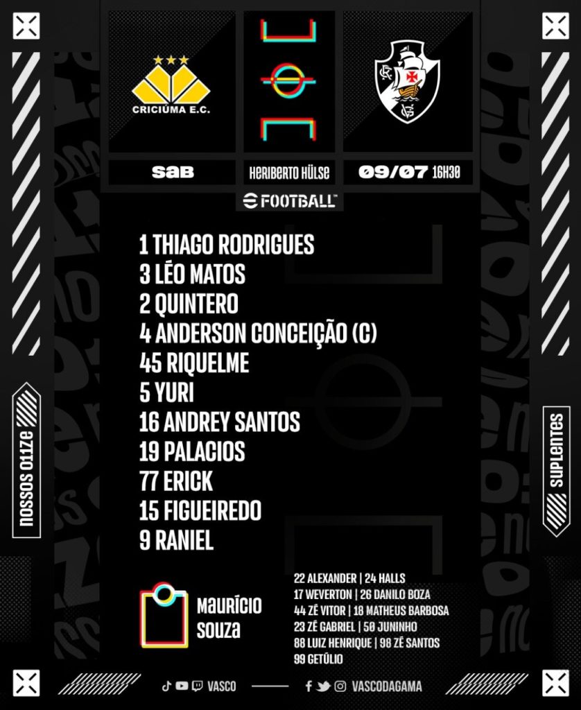 Com novidades, Vasco está escalado para pegar o Criciúma pela Série B do Brasileirão