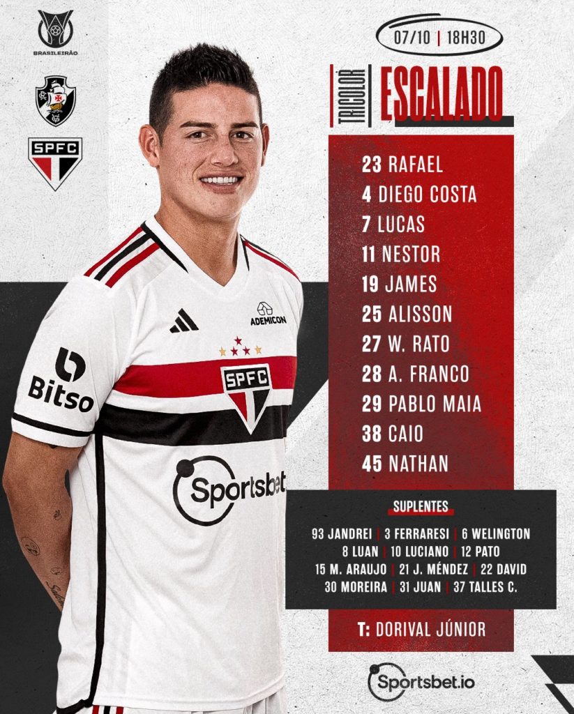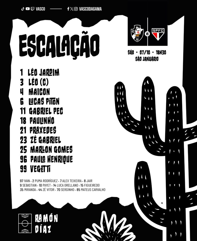 Com Paulo Henrique, Vasco está escalado para enfrentar o São Paulo no Brasileiro