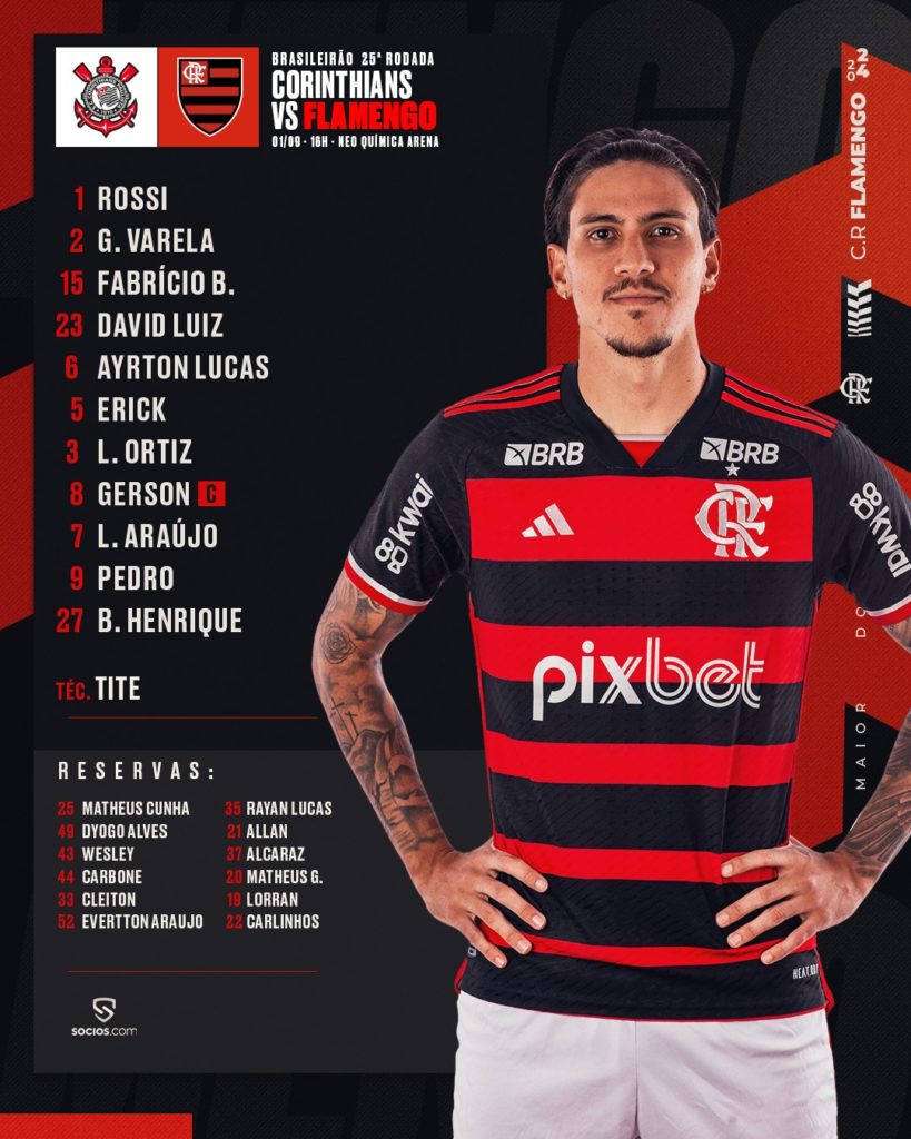 Com Pedro entre os titulares, Flamengo está escalado para encarar o Corinthians