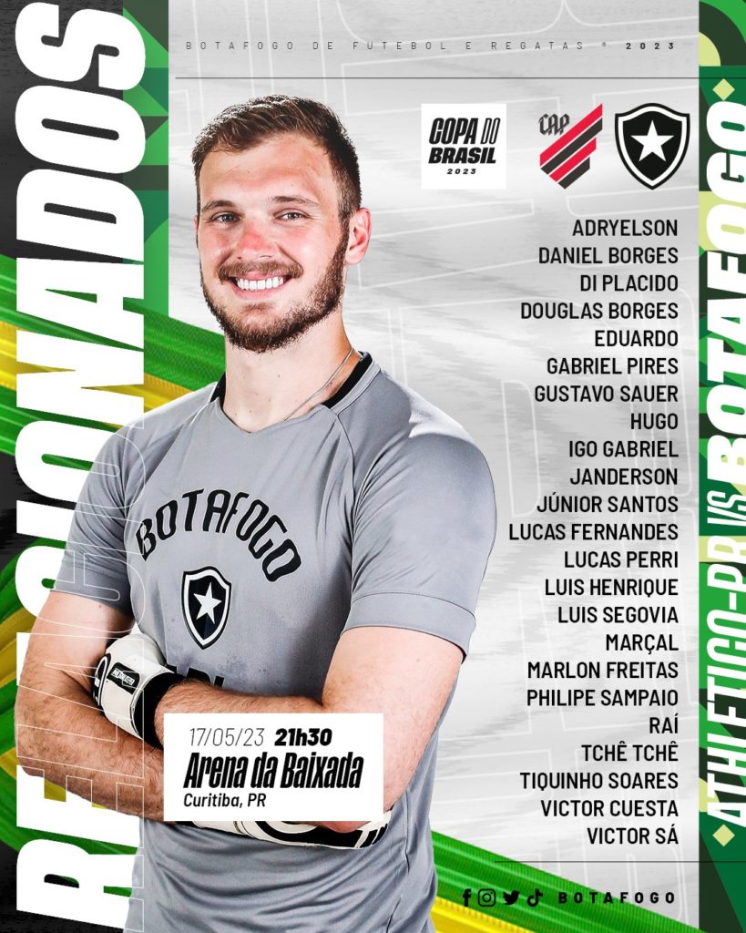 O Botafogo divulgou, nesta terça-feira (16), a lista de relacionados para o jogo de ida das oitavas de final da Copa do Brasil contra o Athletico-PR. A principal novidade é o retorno do zagueiro Victor Cuesta, que ficou de fora da partida contra o Goiás pelo Campeonato Brasileiro.