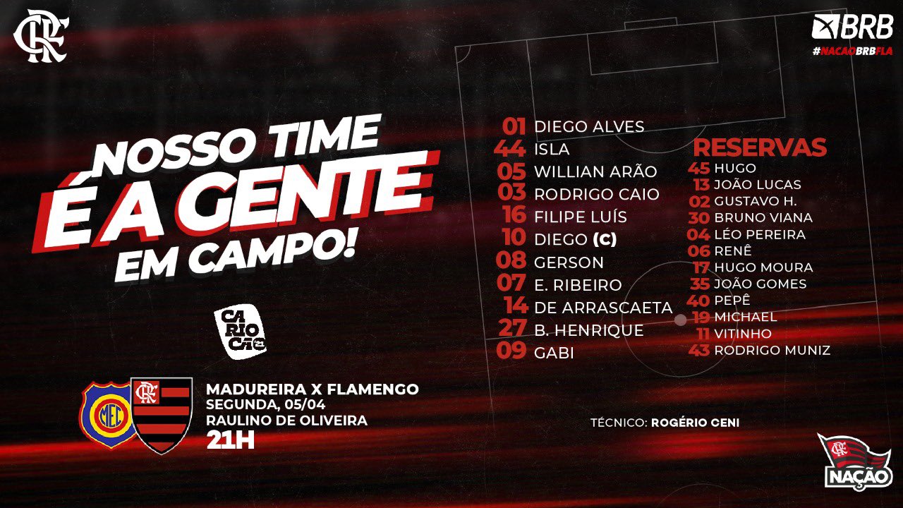 Com Rodrigo Caio de volta, Flamengo está escalado para enfrentar o Madureira