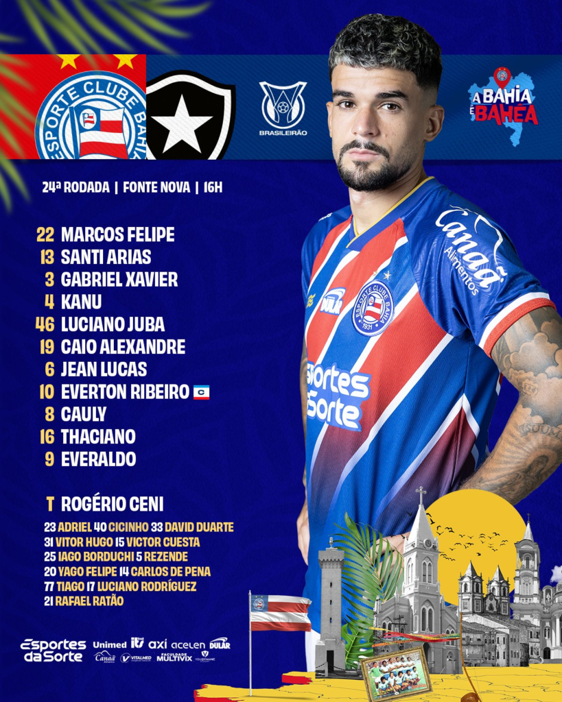 Partida será disputada neste domingo (25), às 16h, na Arena Fonte Nova
