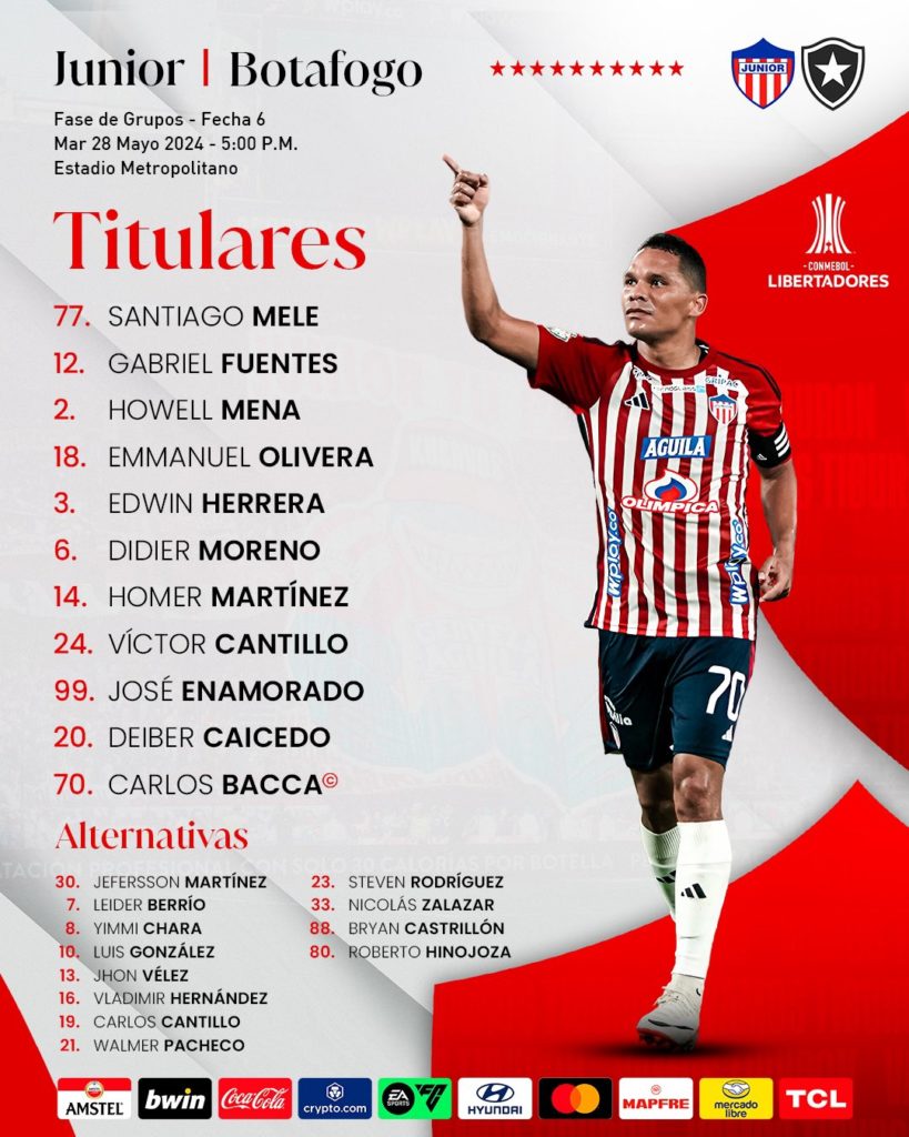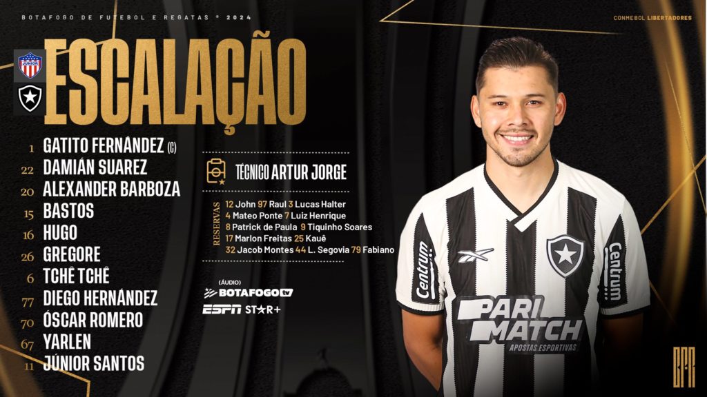 Nesta terça-feira (28), o Botafogo entra em campo contra o Junior Barranquilla pela sexta rodada da fase de grupos da Libertadores com um time misto. Já garantido na próxima fase, o treinador Artur Jorge poupou alguns titulares na partida. Os únicos mantidos foram Damián, Bastos, Hugo, Tchê Tchê e Júnior Santos.