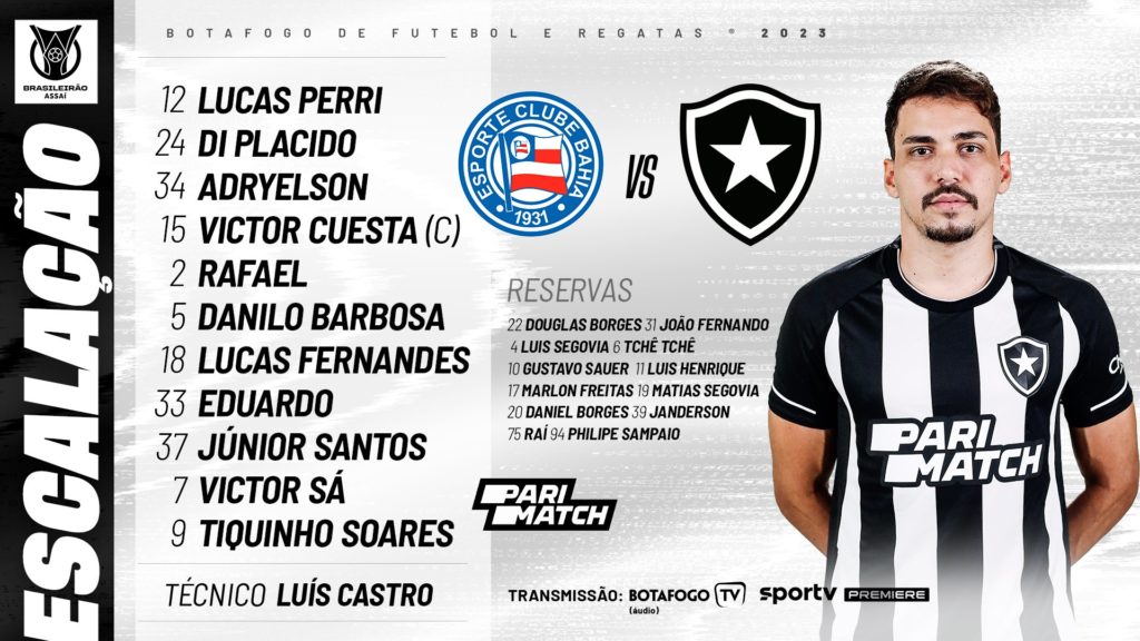 Com titulares mantidos, Botafogo está definido para pegar o Bahia no Brasileiro
