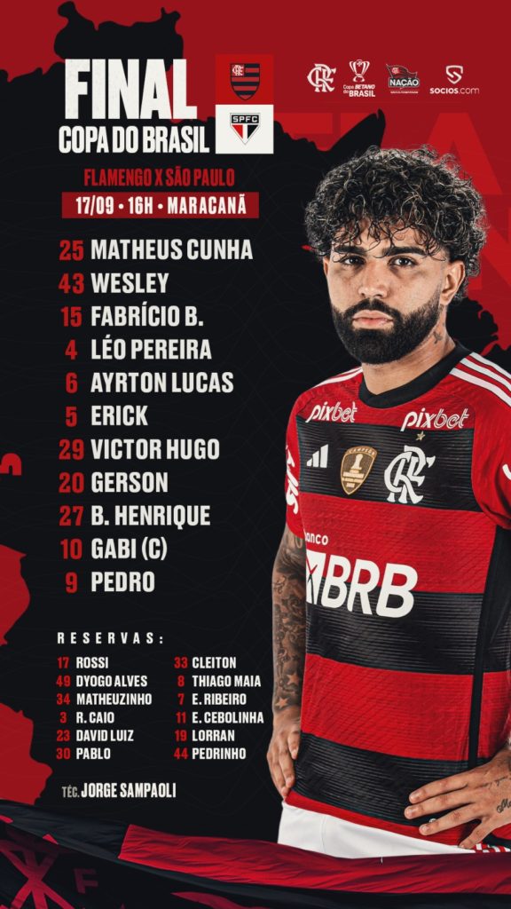 Com trio de peso na frente, Flamengo está definido para receber o São Paulo na Copa do Brasil