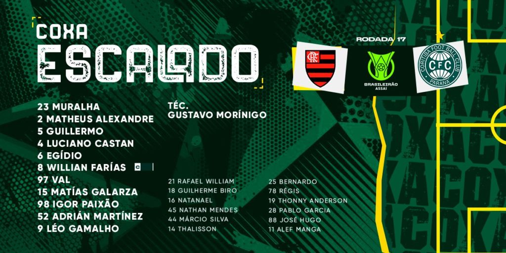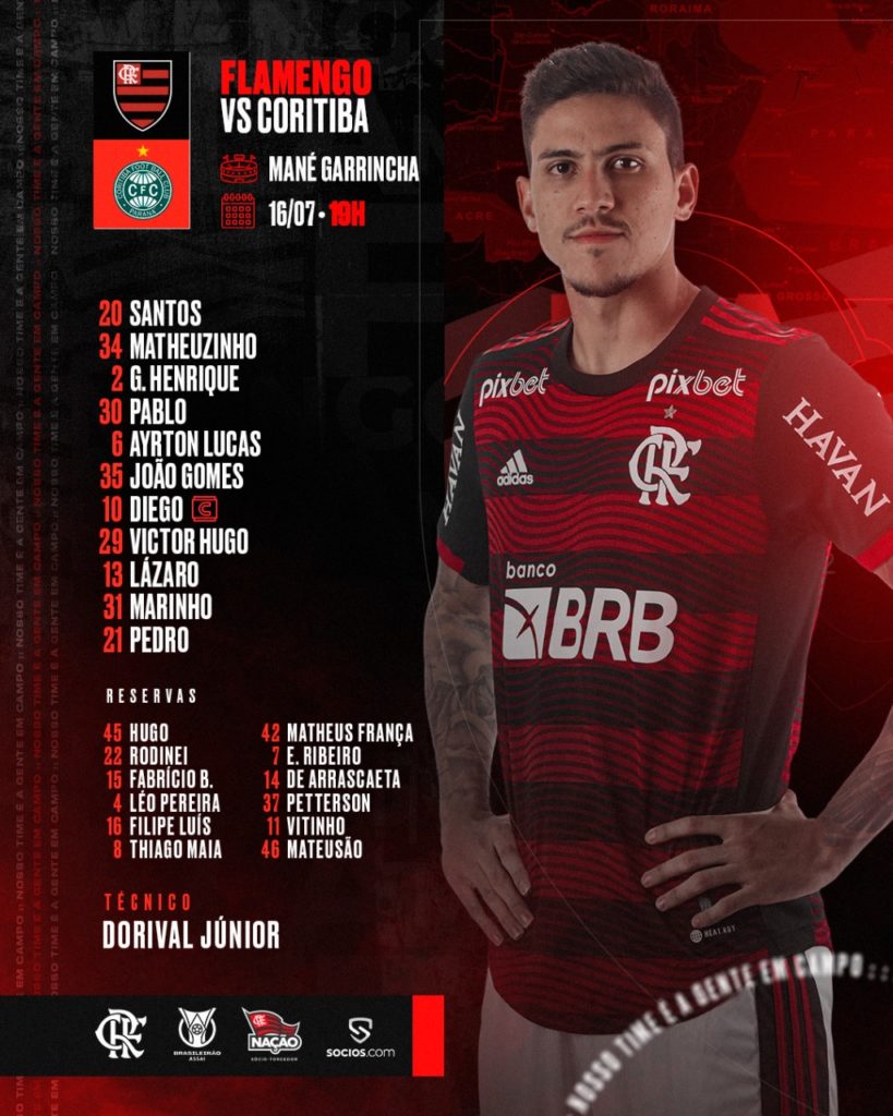 Com várias mudanças, Flamengo está escalado para pegar o Coritiba pelo Campeonato Brasileiro