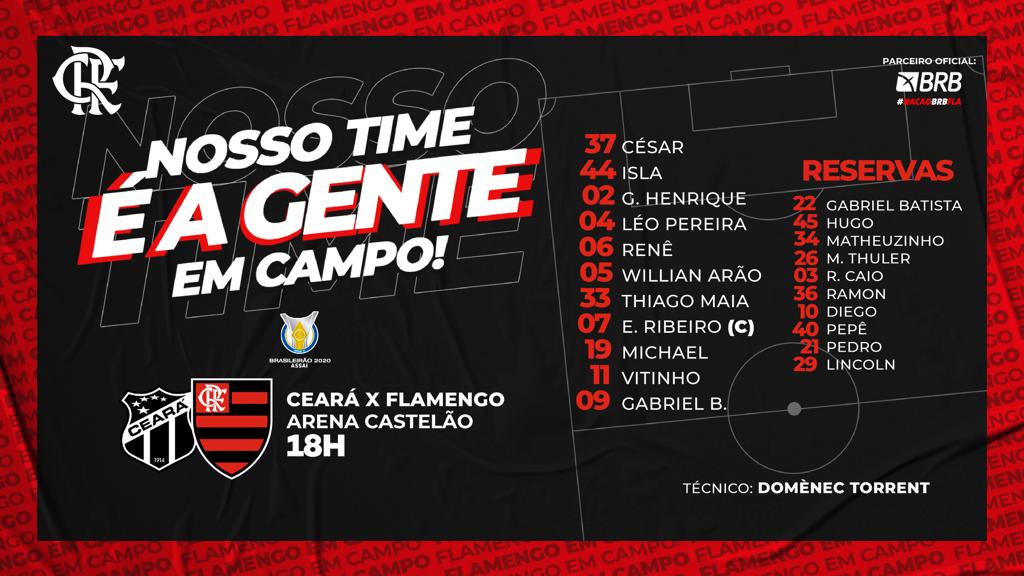 Com Vitinho na equipe titular, Domènec escala o Flamengo para encarar o Ceará