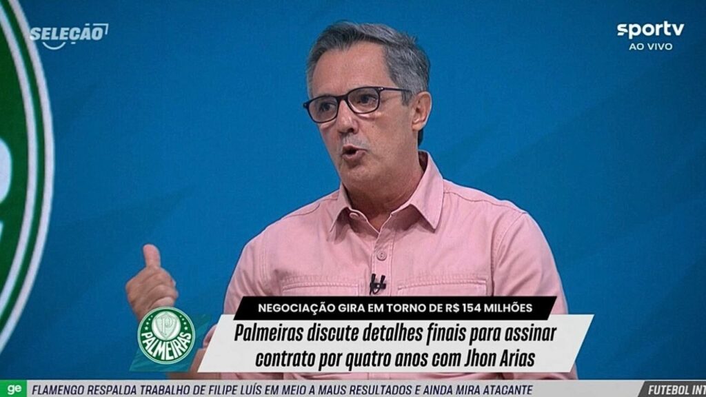 Durante o programa, Lino questionou se o Flamengo teria inflacionado o mercado ao entrar na disputa: “O Flamengo conseguiu inflacionar? O Palmeiras vai pagar mais do que pagaria?”, perguntou.
