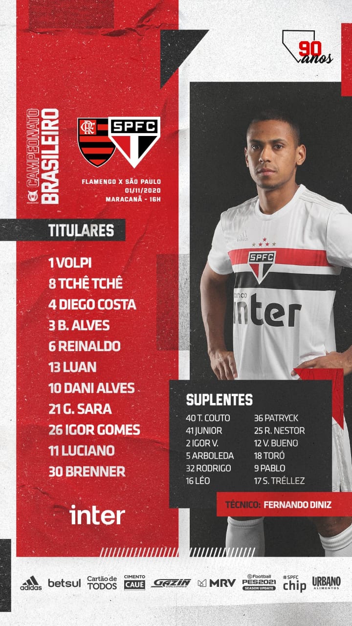 Confira a escalação do Flamengo para enfrentar o São Paulo, no Maracanã
