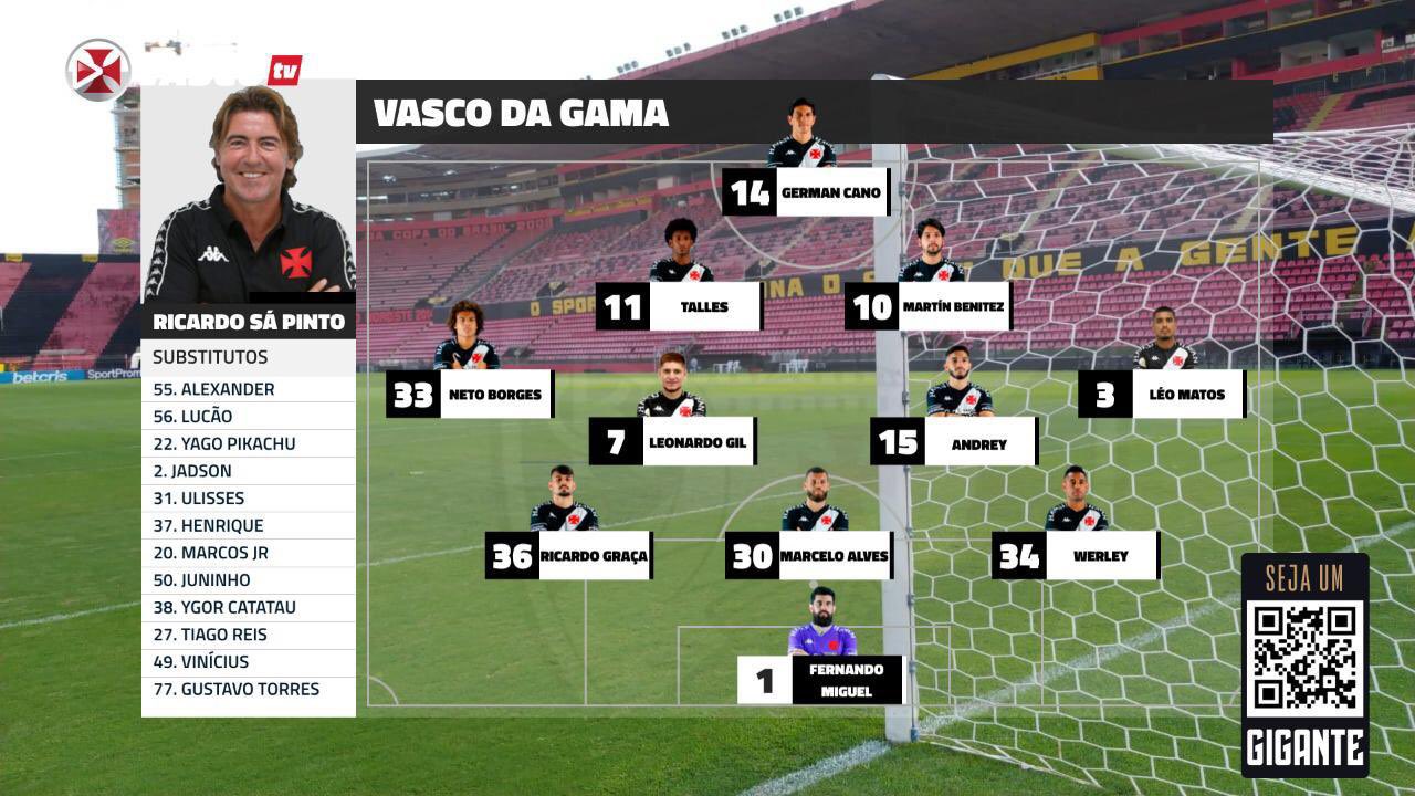 Confira a escalação do Vasco para enfrentar o Sport pelo Brasileirão
