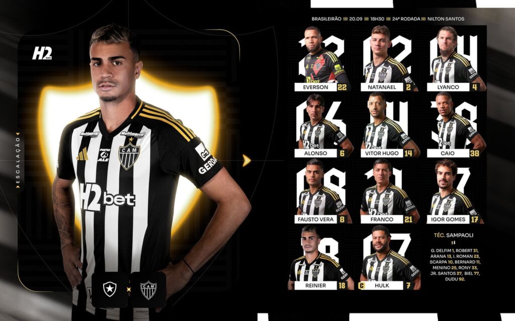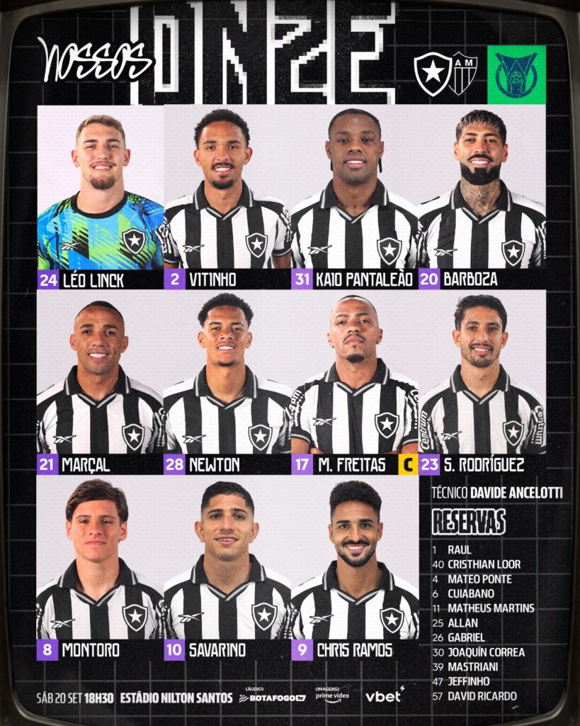 Botafogo e Atlético-MG já estão escalados para a partida de daqui a pouco, válida pela 24ª rodada do Brasileirão. Confira as escalações