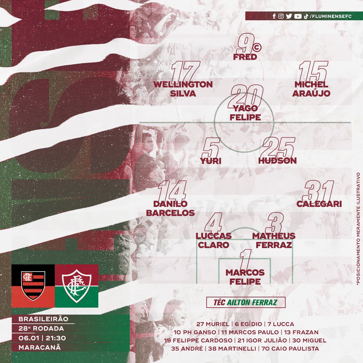 Confira as escalações do Fla-Flu desta quarta-feira pelo Campeonato Brasileiro