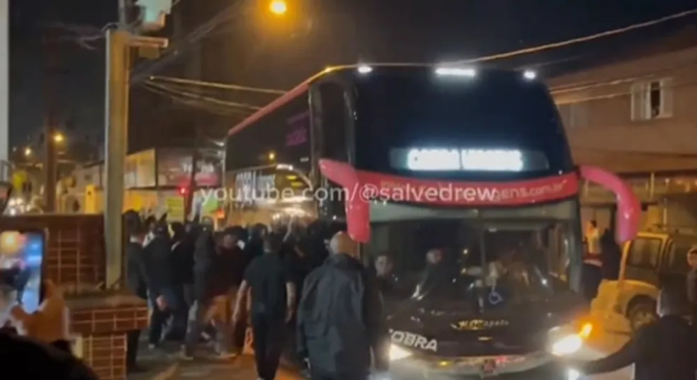 Torcedores cercaram o ônibus da equipe e soltaram rojões, bombas e foguetes, bateram na lataria do veículo e ameaçaram os atletas e comissão técnica