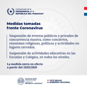 O Governo do Paraguai anunciou nesta terça-feira (10/3), que os jogos de futebol e demais eventos públicos serão realizados de portões fechados pelos próximos 15 dias para evitar a proliferação do coronavírus.