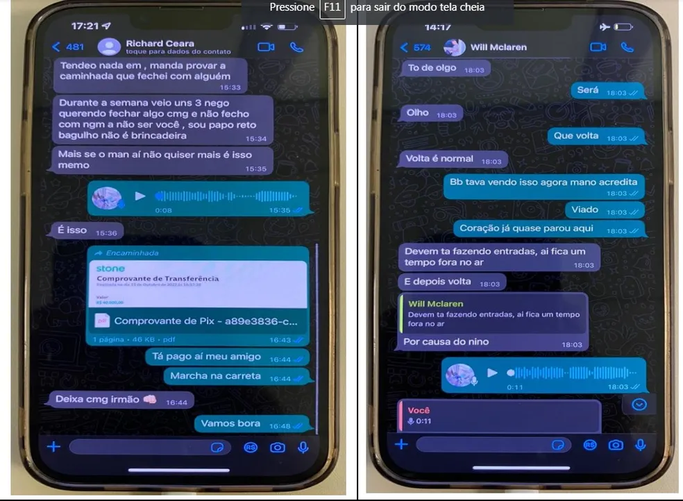 Após o acordo, o jogador recebeu um arquivo com comprovante de pagamento e respondeu: “Deixa comigo irmão”. De acordo com a súmula, Richard foi advertido aos 12 minutos do segundo tempo.