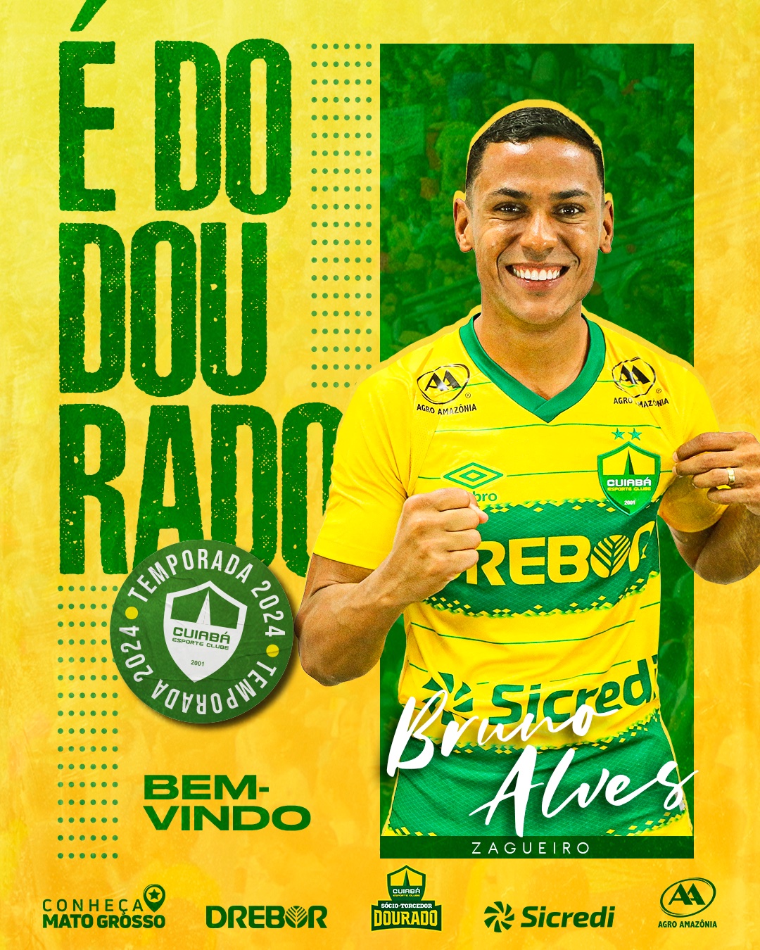 O Cuiabá anunciou nesta quarta-feira (10) a contratação do zagueiro Bruno Alves, ex-Grêmio. Livre no mercado, o jogador assinou em definitivo com o Dourado e o contrato será válido por uma temporada, com possibilidade de renovação por mais um ano.
