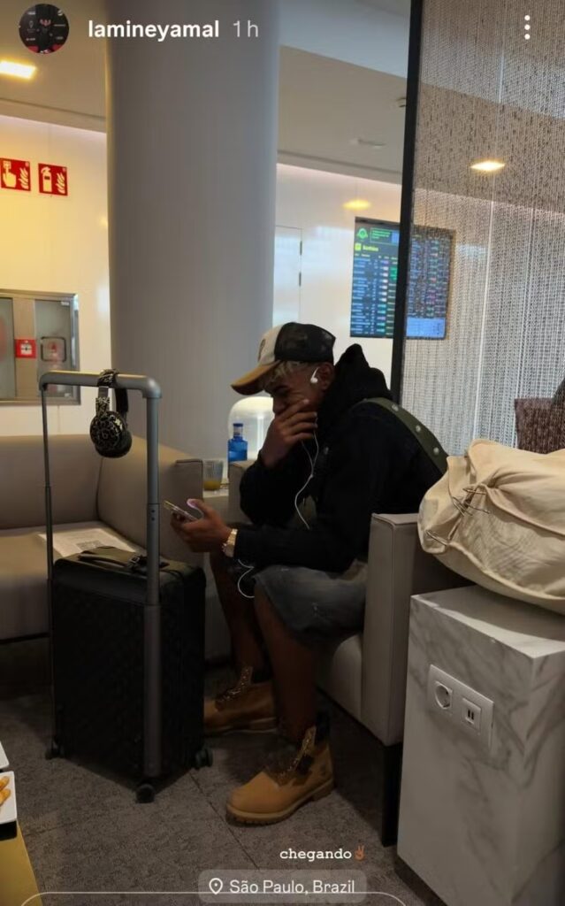 Uma das principais joias do futebol mundial, Lamine Yamal, do Barcelona, vai aproveitar suas férias no Brasil. O atacante de 17 anos do Barcelona-ESP postou uma foto, em seu perfil nas redes sociais, viajando rumo a São Paulo. O jogador, aliás, já desembarcou em solo paulista e deve encontrar com Neymar, seu ídolo de infância, nos próximos dias. Ao menos, é o que garante a imprensa europeia.