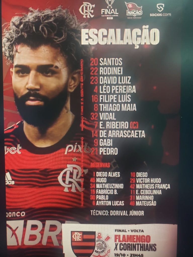 Definido! Flamengo está escalado para pegar o Corinthians na grande final da Copa do Brasil