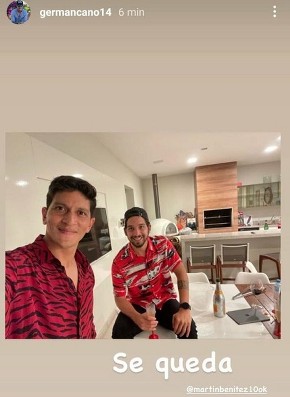 Antes mesmo de o Clube de Regatas Vasco da Gama anunciar a permanência de Benitez, o centroavante Cano já estava comemorando nas redes sociais a continuidade do trabalho do meia no elenco Cruzmaltino.