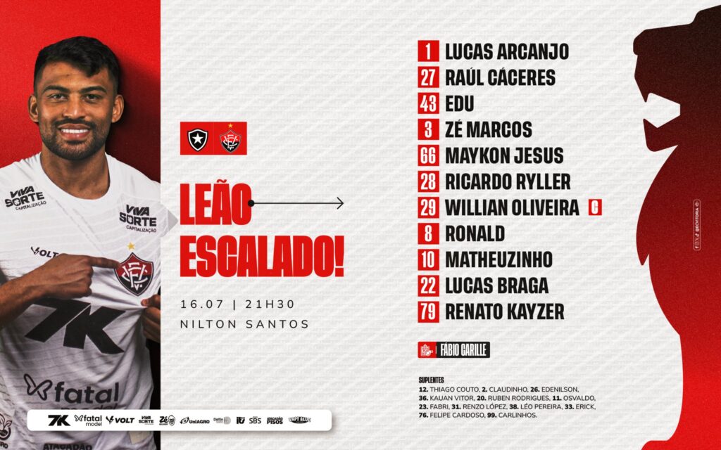 Nesta quarta-feira (16), o Botafogo enfrenta o Vitória, no Nilton Santos, às 21h30, pela 14ª rodada do Campeonato Brasileiro. O técnico Davide Ancelotti fez apenas uma modificação: Allan entrou no lugar de Gregore.