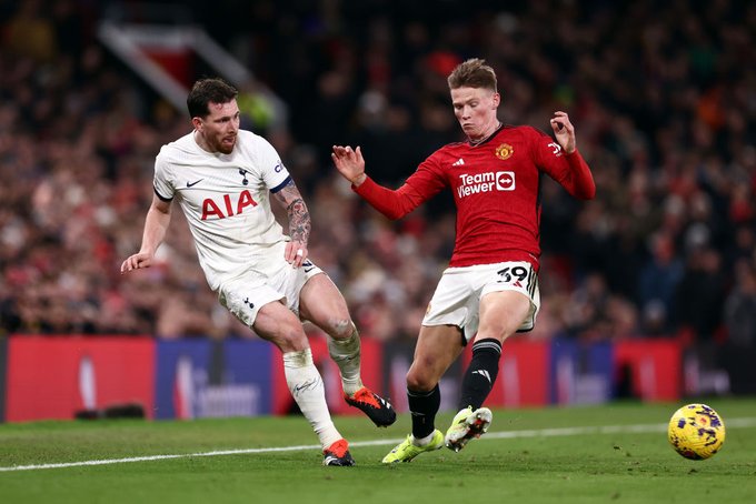 Os Diabos Vermelhos saíram na frente logo aos três minutos com Höjlund. Aos 19, Richarlison marcou de cabeça e empatou a partida. Ainda no primeiro tempo Marcus Rashford boto o Unitd na frente do placar, porém Bentancur deixou tudo igual no primeiro minuto da etapa final. O Tottenham não contou com Son, que está com a seleção da Coreia do Sul que disputa a Copa Asiática. O time contou a estreia do atacante Timo Werner.