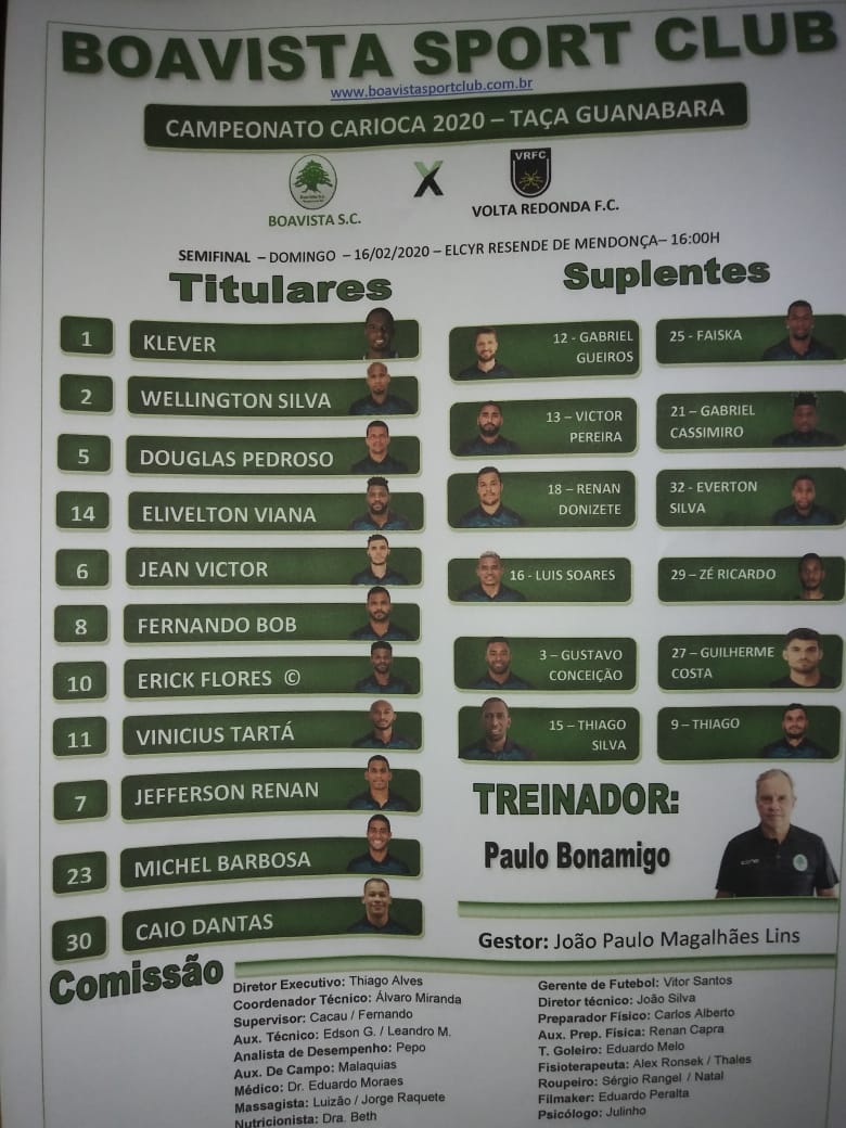 Escalações disponíveis! Confira as equipes de Boavista e Volta Redonda para a semifinal da Taça Guanabara