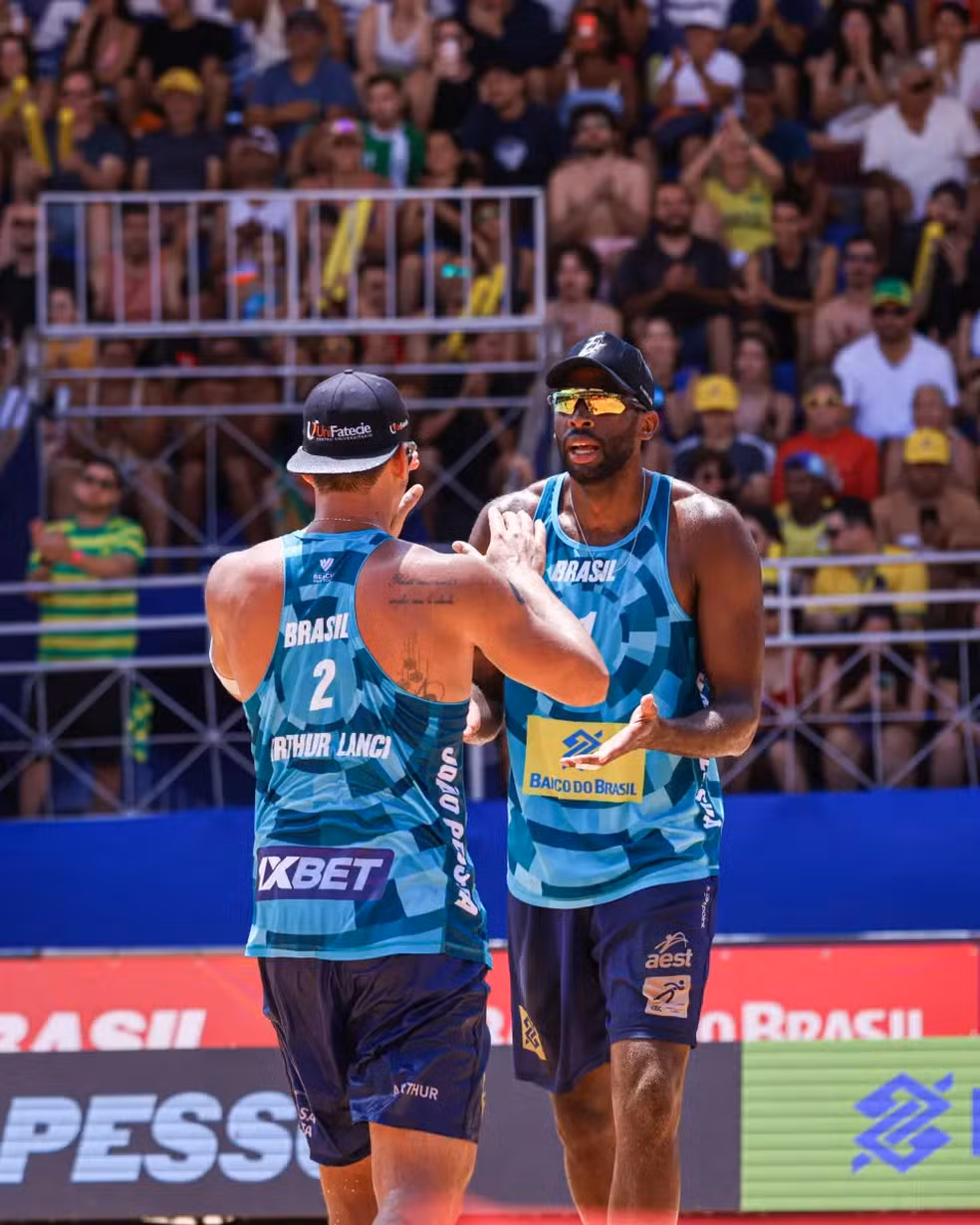 Evandro e Arthur são campeões da etapa de João Pessoa do Circuito Mundial de vôlei de praia após vitória sobre dupla francesa