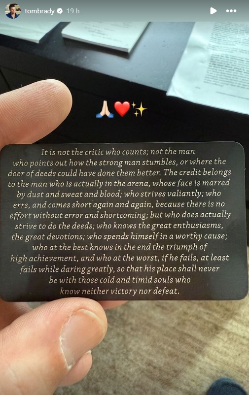 Nos Stories, o ex-atleta publicou um trecho do discurso de Theodore Roosevelt, 26º presidente dos Estados Unidos: