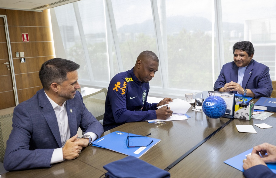 Juan assina contrato com a CBF (Foto: Joilson Marconne/CBF)