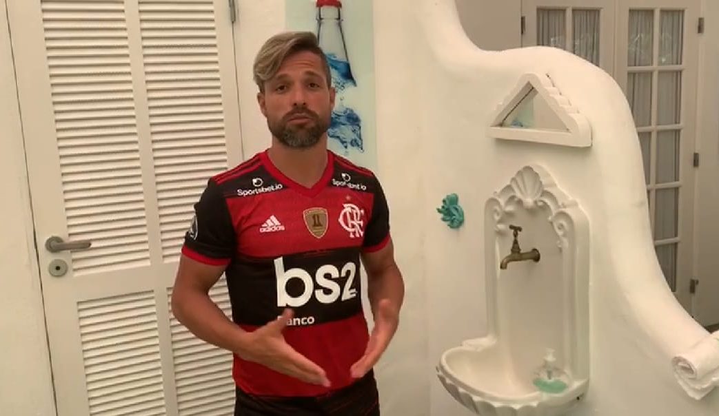 Bruno Henrique, Diego e Filípe Luís foram utilizados em mensagens publicadas pelo clube nas redes sociais