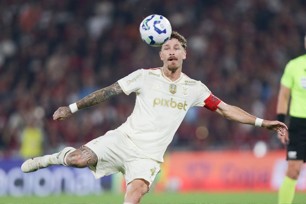 Mas o castigo veio aos 21 minutos. Léo Pereira tentou sair jogando na defesa, errou o passe e Cuello aproveitou, tocando no canto de Rossi para abrir o placar. O goleiro ainda tocou na bola, mas não conseguiu evitar.