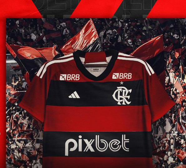 O Flamengo divulgou, nesta terça-feira (02), a primeira imagem da camisa com a empresa Pixbet no espaço master. Na semana passada, o Conselho Deliberativo do clube aprovou o patrocínio da casa de apostas no local considerado mais nobre do uniforme. Com a mudança, a empresa BRB (Banco Regional de Brasília) passa a ocupar a omoplata.