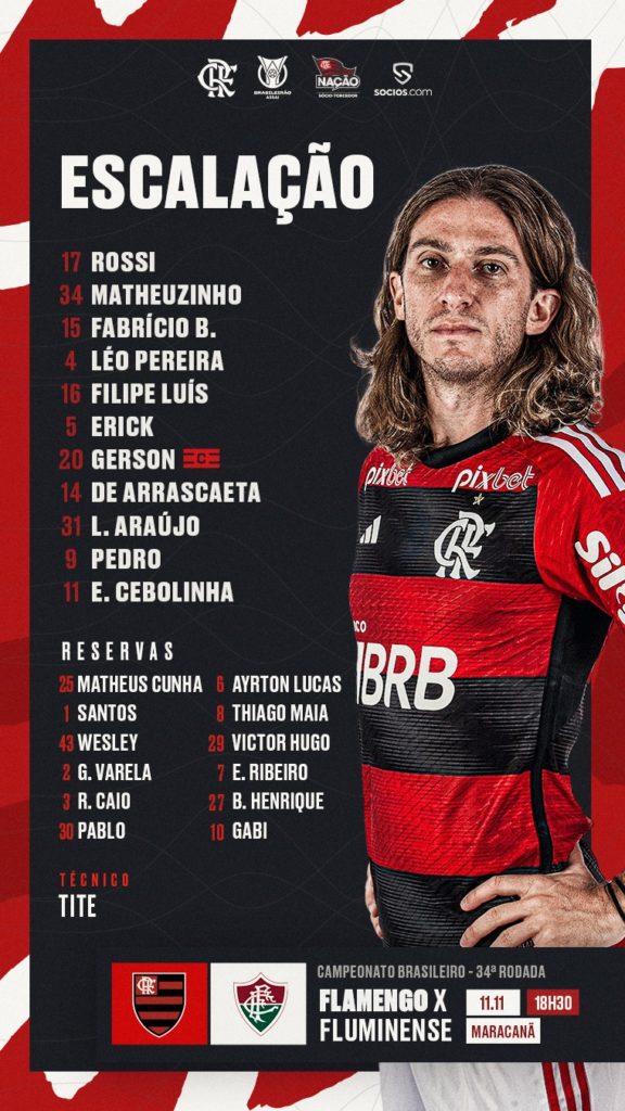 Flamengo e Fluminense estão escalados para clássico pelo Campeonato Brasileiro; confira - Super Rádio Tupi