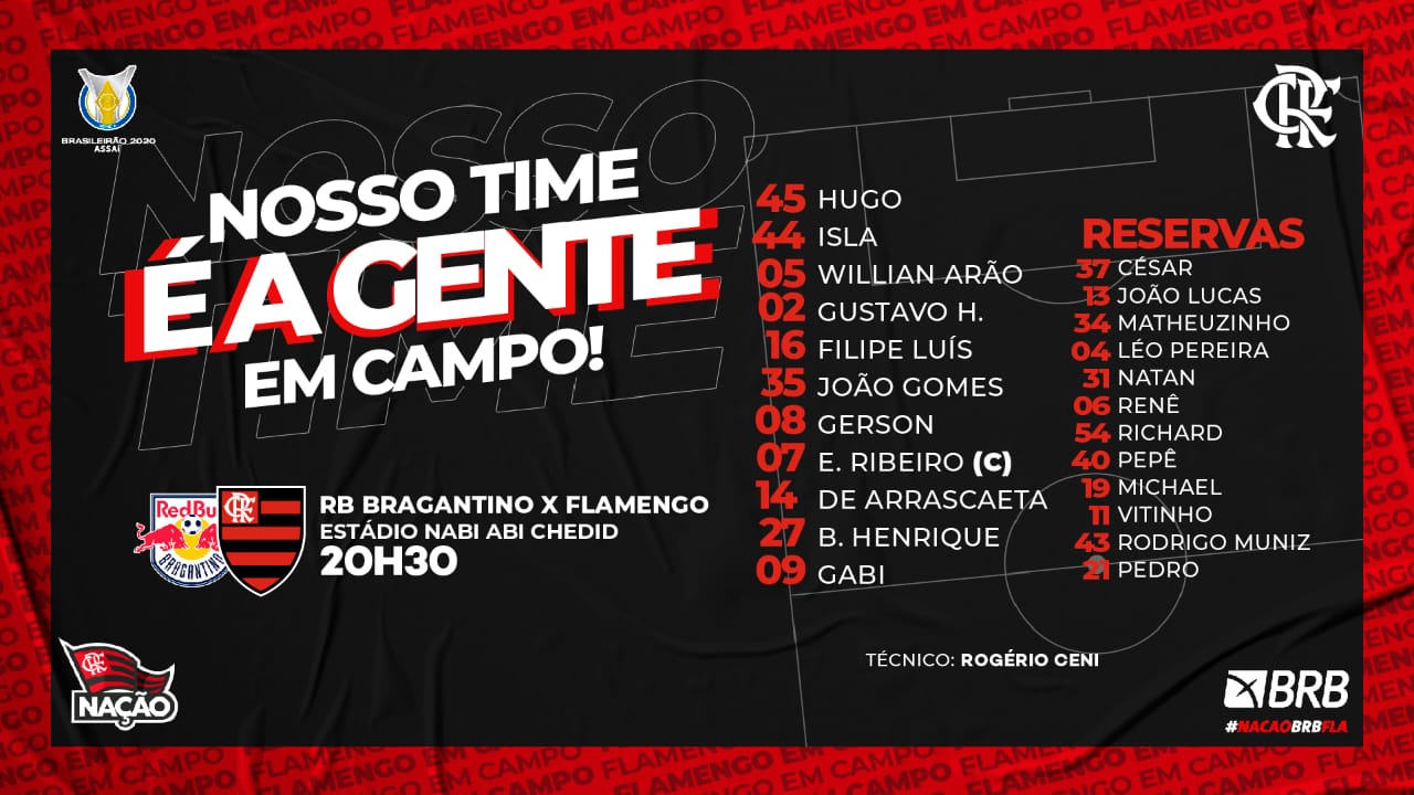Em alta na reta final do Campeonato Brasileiro, Bragantino e Flamengo se enfrentam neste domingo (7) pela 35ª rodada do Campeonato Brasileiro. O duelo será realizado no estádio Nabi Abi Chedid, em Campinas (SP), a partir das 20h30 (horário de Brasília). Do confronto desta noite pode sair o líder da competição. Na vice-liderança, com 64 pontos, o Rubro-Negro pode assumir a ponta na tabela de classificação caso vença fora de casa.